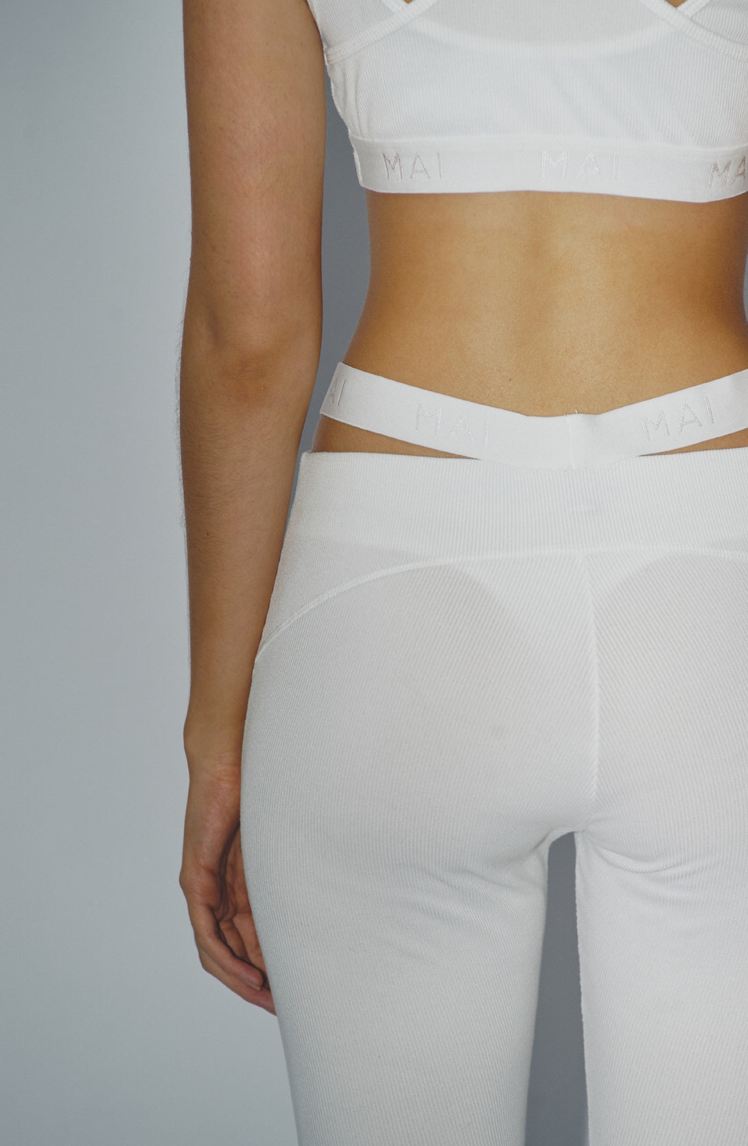Sporty tight pant, made of light and soft polyester with textured, logo band that rises on the sides.