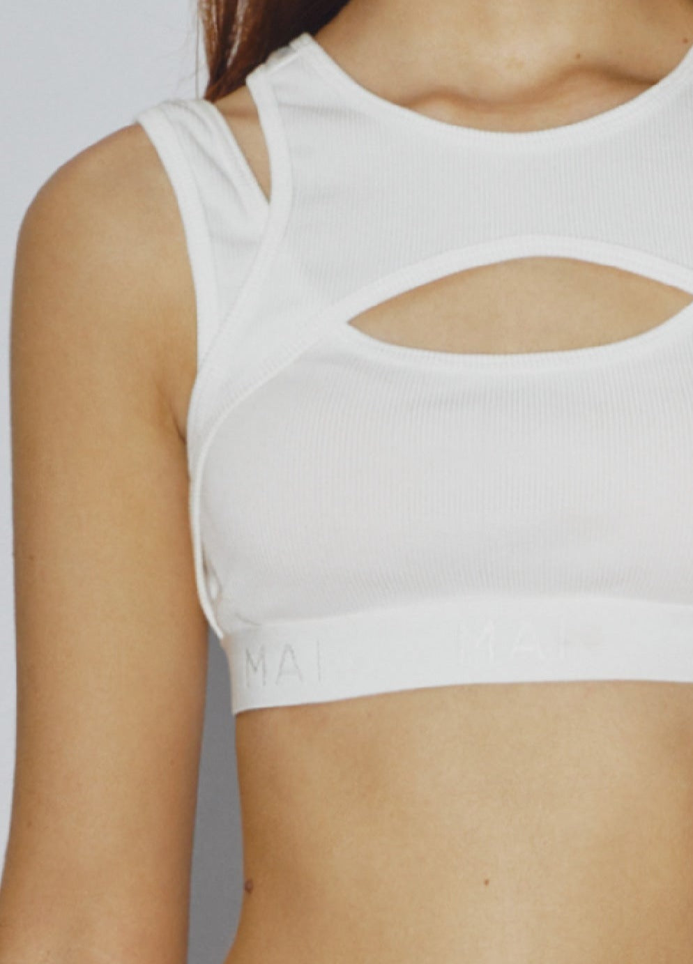 Double sporty top, made of light and soft polyester with texture, it has logoband.