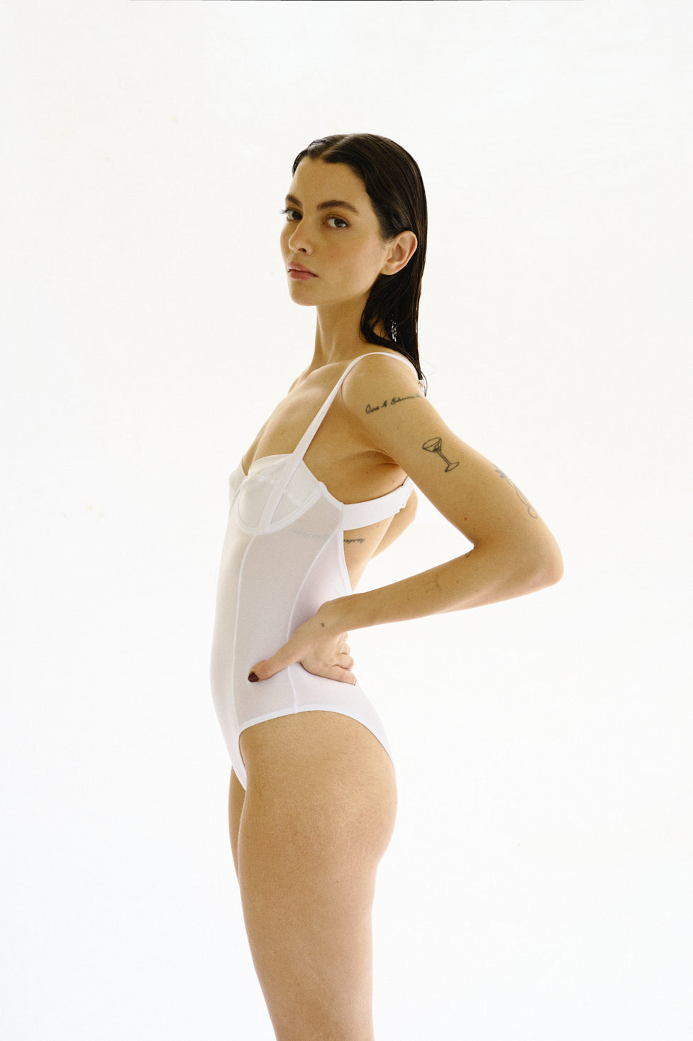 Classic and elegant bodysuit made of shiny polyamide, extra comfortable, enhances the body, provides ideal support. Ideal for light, medium and heavy bust. It has a low back.