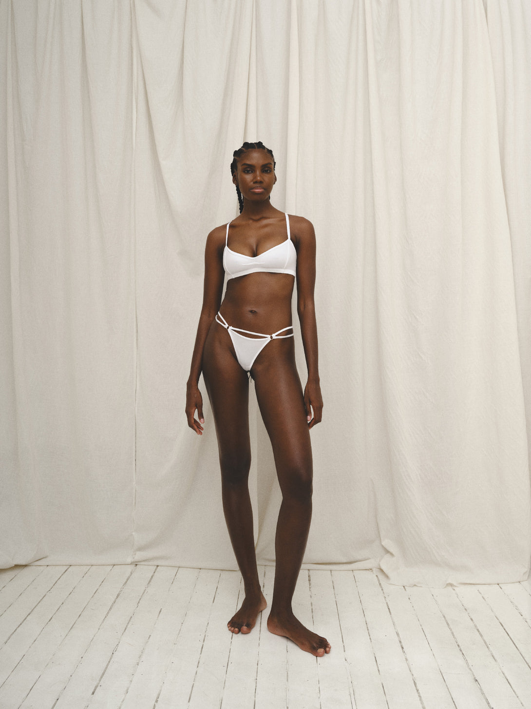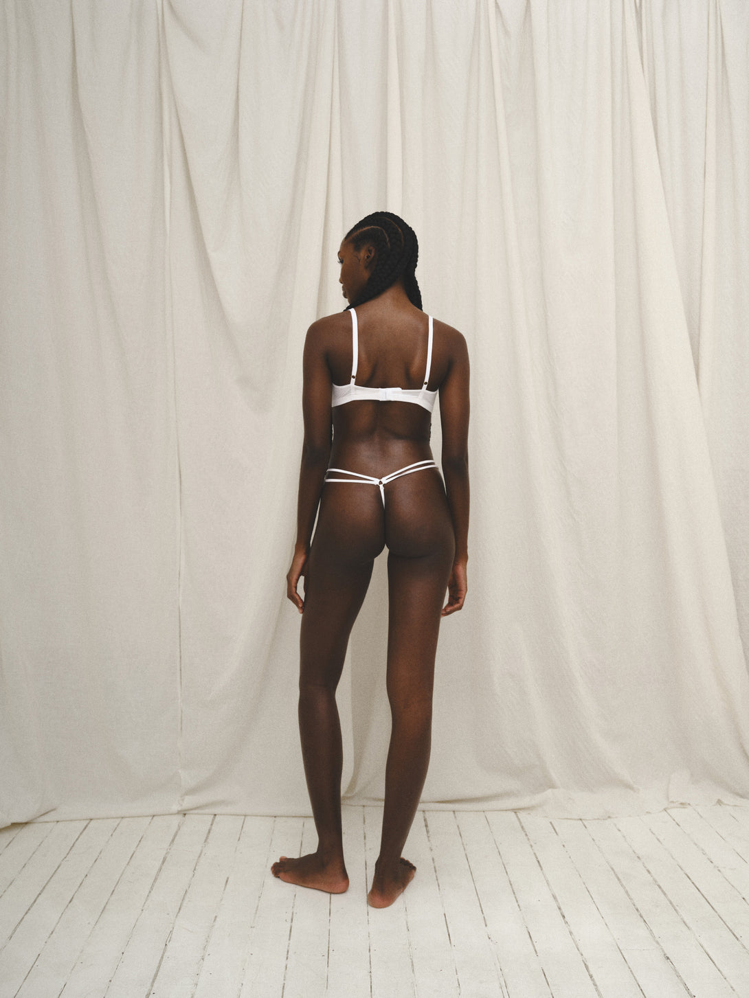 Bra with a horizontal cup clip, made with shiny polyamide, side underwire, three-position fastening, adjustable satin straps and 24k gold-plated accessories.